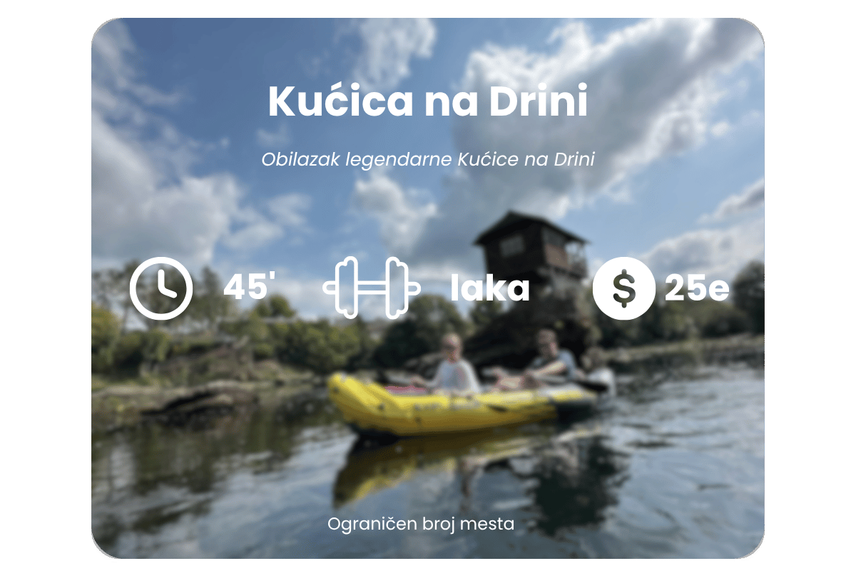 Avantura počinje sa tobomIstraži reku Drinu na jedinstven način Rezerviši svoju kajak/sup/rafting avanturu Zašto mi? Zovem se Nikola i odrastao sam na reci Drini.Već 12 godina uz pomoć moje porodice vodim ture i pomažem ljudima da dožive ovu reku na pravi način.Ako želiš sigurnu, opuštenu i autentičnu avanturu – na pravom si mestu.